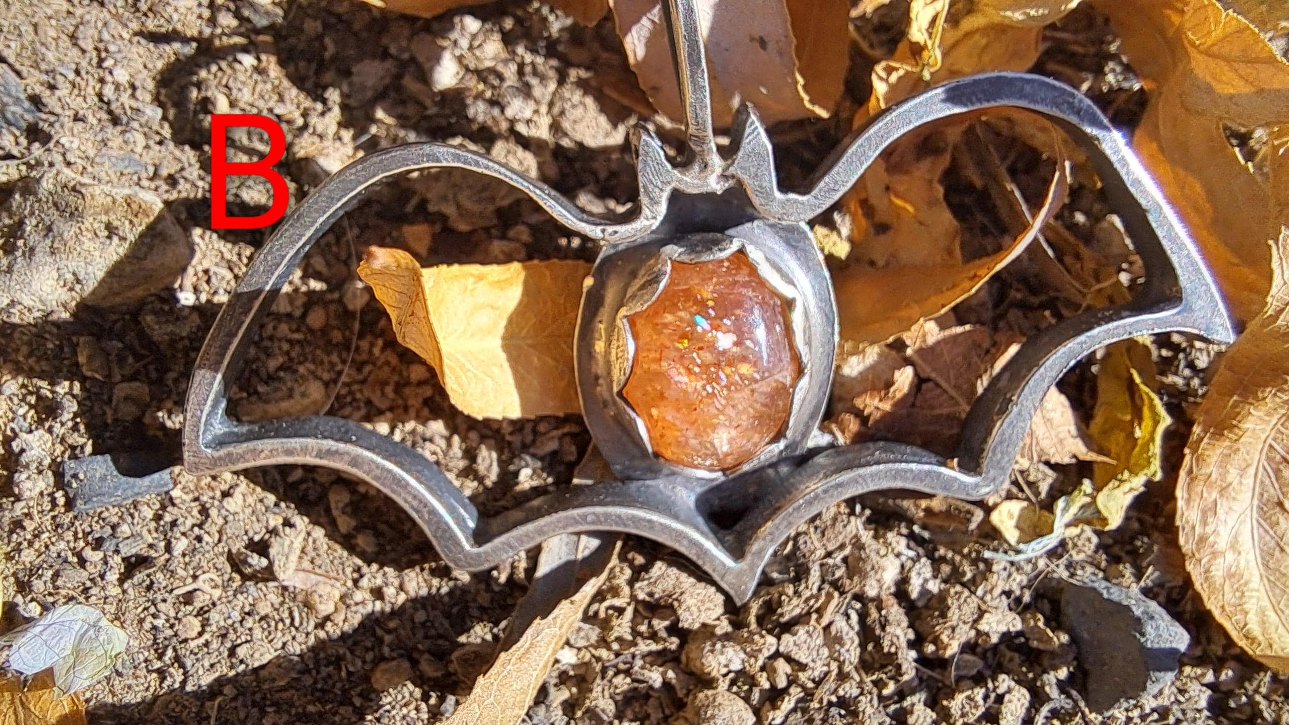 This simple yet striking pendant features a sleek bat silhouette, crafted from oxidized sterling silver for a dark, moody finish. Nestled at the center is a rainbow confetti sunstone, flashing with subtle sparkles of color that catch the light like scattered stardust. The contrast between the deep silver and the vibrant stone creates a bold, mystical vibe—perfect for those who love a touch of magic and mystery in their style. A unique piece that’s elegant enough for everyday wear, but with just the right amount of spooky charm.
