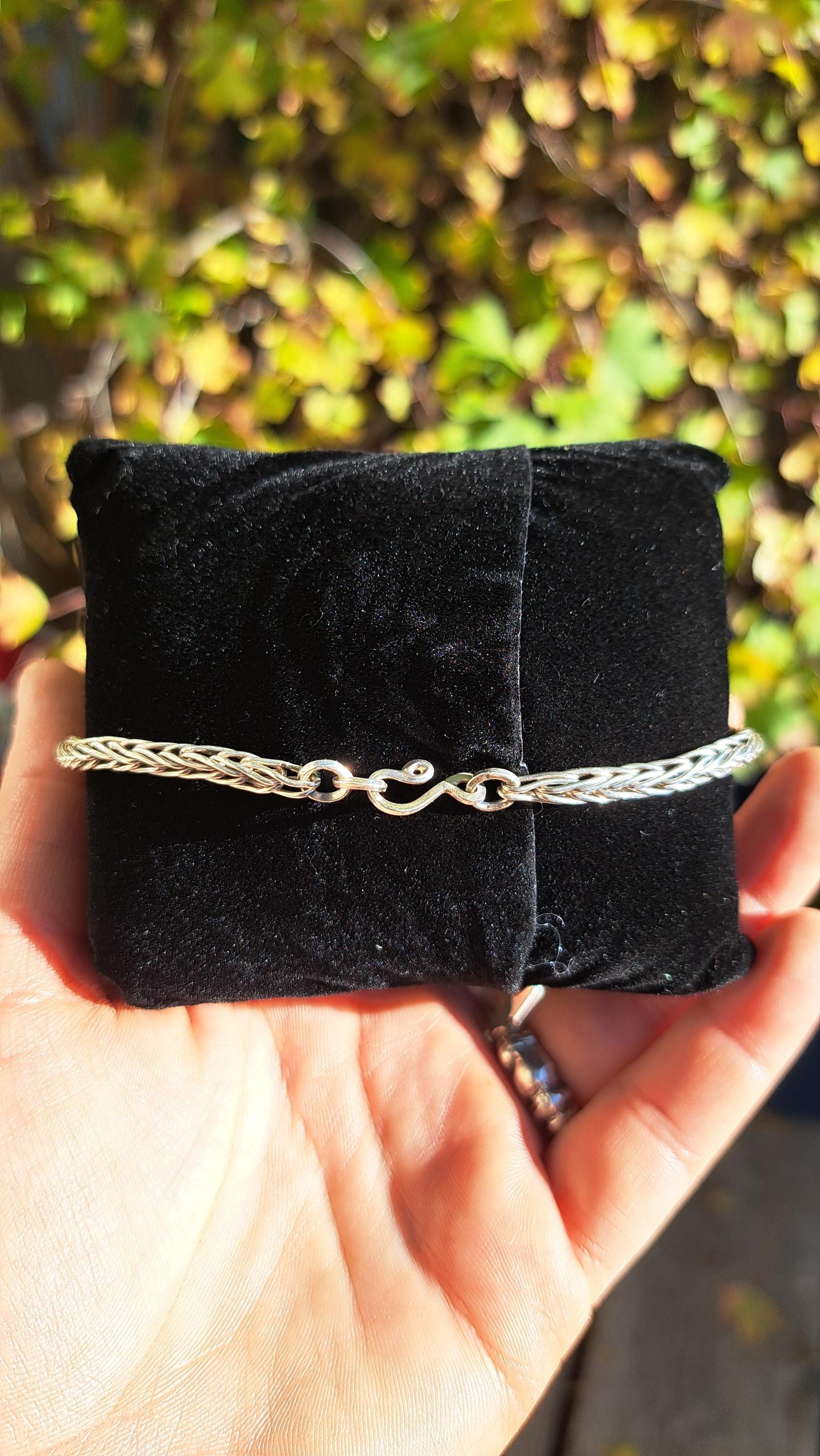 This handcrafted bracelet features the classic 13-point Grateful Dead lightning bolt, made from solid sterling silver. The centerpiece is paired with a handmade Foxtrail chain, known for its strong, flowing design and comfortable fit.